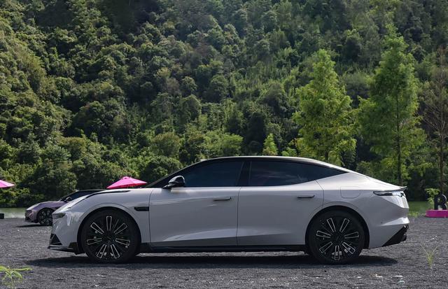再来看车身侧面部分,车身侧面采用隐藏式水切设计,从A柱延伸至C柱的流畅线条不仅提升了视觉美感,更优化了风阻系数。无框车门设计搭配21英寸锋曜轮毂(顶配专属),营造出强烈的运动氛围。车身尺寸方面,5050mm的车长和3005mm的轴距确保了充裕的乘坐空间,同时通过精心设计的比例分配,保持了中大型轿车应有的优雅气质。隐藏式门把手和低风阻轮毂等细节设计,进一步提升了整车的空气动力学性能。