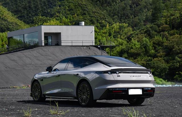 再来看车尾部分,车尾设计与前脸形成呼应,盈能贯穿式尾灯采用线段式发光结构,点亮后如流光横贯车尾,夜间辨识度极高。运动版车型配备的主动升降隐藏式尾翼,车速超 70km/h 时自动升起,提供稳定下压力,低于 30km/h 则自动收折,兼顾美观与实用。后包围扩散器与双边共两出排气装饰(实际为隐藏式)强化运动氛围,黑色小鸭尾与车身线条自然衔接,让 5 米长的车身不显臃肿,反而透出轿跑的灵动气息。